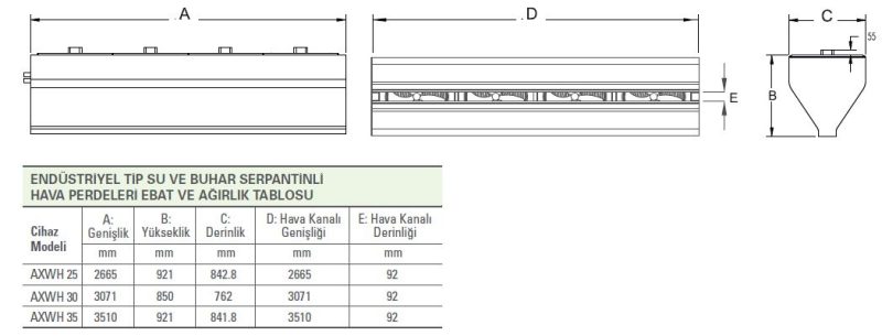 | AXWH 25 BATARYALI HAVA PERDESİ Teknik Özellikler | |||||