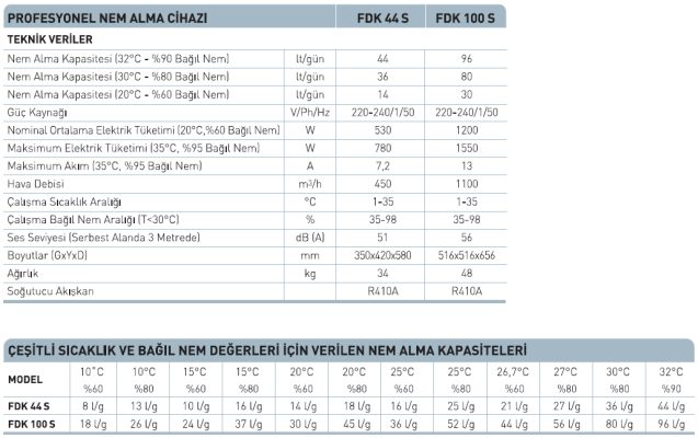 | FDK 100 S Profesyonel Nem Alma Cihazı Teknik Özellikler | |||||