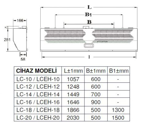 | LCEH-14 Elektrikli Isıtıcılı Hava Perdesi Teknik Özellikler | |||||